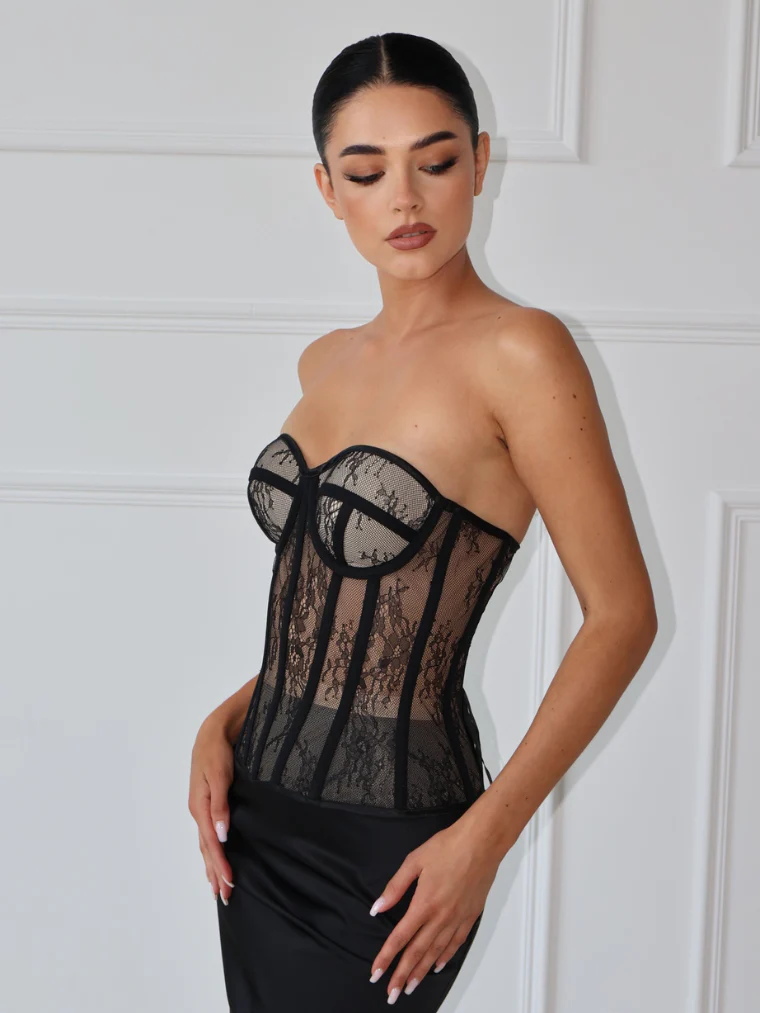 Revealing its seductiveness and elegance, the girdle with transparent inserts promises an impressive look.Made from fine lingerie mesh with contrasting black lines, this corset is not only sexy but also a stylish addition to your wardrobe. Built-in underwire and frame details provide the perfect support and fit, flattering your figure in all the right places. This corset is ideal for bold and confident girls who like to stand out and create unforgettable looks. Whether you're heading out for a romantic date, party or special occasion, this corset will be your secret weapon of seduction, adding a touch of mystery and excitement to your look.The corset cup has push-up inside, which can provide perfect .